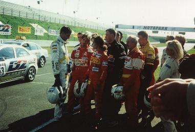 Im Frühjahr 99 waren wir im Moto-Park Aschersleben. Benzin im Blut, eine Sat1 Produktion, hat uns einige Tage beschäftigt. Kathrin durfte in einer Renn-Kombi spielen. Ich durfte olle Felgen durchs Bild tragen :( In Kathrins Wagen war kein Motor :) |
