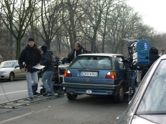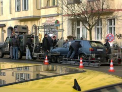 Tja Lena, du olle Pool-Tusse, bei mir gings dann doch noch ab. So 007 mäßig durften wir durch Berlin fahren. Komisch, das Auto stand auf`n Anhänger. Die Kamera konnte um uns rumfahren. Cooler Hut übrigens. Ihr hättet mich sonst nicht sehen können. Wir wurden auch nicht angeschnallt. Da ruf ich doch mal die Polimanzisten mit den Pistemantolen an. Die können dem Wolff dann einen Strafzettel ausstellen. |