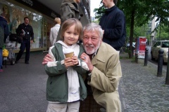 Die Nase rechts gehört dem Regisseur Herrn Silber und unten seht ihr Dietmar Schönherr. Papa hat ihn gefragt, ob er ein Foto mit mir macht und sich gemeinsam mit D.S. an irgendeine Sendung erinnert, wo ein Auto mit Menschen drinne in einen Pool getaucht wurde. Gedreht wurde übrigens im Mai 04, gleich nach Sophie. |
