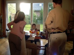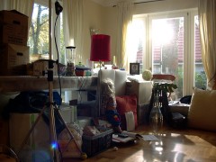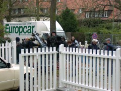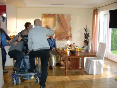 Zunächst ging es um eine Szene am Frühstückstisch. Ich sag hier nicht wer seinen Text nicht konnte... ich war es jedenfalls nicht! Naja, ulkig war, dass die das alles mehrfach filmen und die Kamera immer an eine andere Stelle aufbauen. |