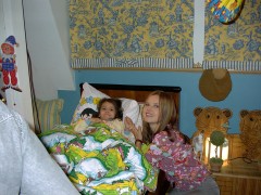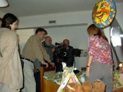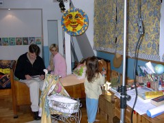 Es folgte noch meine erste “Bettszene”. Das Kinderzimmer hat mir gut gefallen. Die haben dann die ganzen Fenster zugeklebt. Irgendwann war es dann im Zimmer dunkel. Es wurden jede Menge Scheinwerfer angebaut. Ich versteh das nicht. Zu Hause muss ich das Licht immer ausmachen wenn es draußen hell ist. |