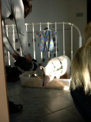 Eine Menge Leute rannten auch rum. Alle haben irgendetwas gemacht. Wusel wusel. Ich durfte dann in der großen Badewanne rumschwimmen. Erst war das toll...aber mit der Zeit wurde es dann doch sehr kalt. Die hatten vergessen die