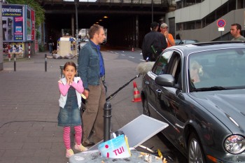...auf der Straße wurde es mir dann doch noch langweilig. Das ist der grund, warum Edwin und ich in der Szene so rumhampeln. Ich konnte einfach nicht mehr stillstehen und der Michael Lott hat die Hampelei dann mitgemacht und somit haben wir etwas das Drehbuch an die Bedürfnisse der Jungschauspielerin angepasst. Tschüss bis zum Warner Movie Park, eure Lena |