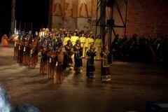 Aida auf der Seebühne. Imposante Inszenierung, Massenhaft Komparsen, lebende Tiere, die Zuschauer sind aus dem gesamten Bundesgebiet angereist. Demnächst geht das TdL mit dem Stück nach Japan ... leider ohne die Komparsen :-(((