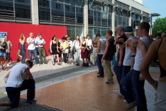 Die Da Rookies, derzeitige Weltmeister im Break Dance trainieren einmal wöchentlich im Steps-Dance-Center den Nachwuchs. Auf den Fotos sind die Da Rookies vor der Cash-Box, der Jugendfiliale der
