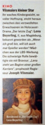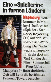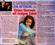 Lena Beyerling - Kinderstar Neue Post, Heft 52, 18.12.2007 Lena und Ein Herz für Kinder Volksstimme, 17.12.2007 Lena und Laurin, Weihnacht 2007 Schöne Woche, Heft 51, 12.12.2007 Lena und ein Herz für Kinder Volksstimme, 08.12.2007 Laurin und der Deutsche Comedypreis IN, 31.10.2007 Neue Post, 31.10.2007 Volksstimme, 29.10.2007