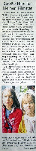 Bild, 24.04.2006, Seite 3 Olvenstedter Schüler krönen Lesekönig Volksstimme, 05.04.2006, Lokales Hans-Laurin, Kinostart “Die Wolke”